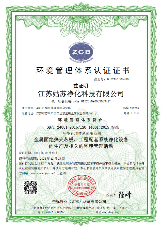 環(huán)境管理體系認證證書
